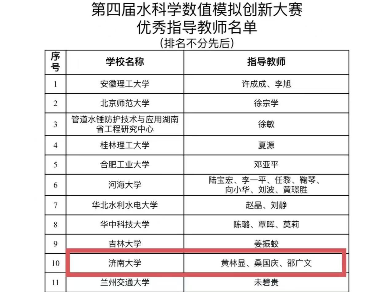 近日,第四届水科学数值模拟创新大赛圆满落幕,中国水利学会公布获奖名单。本次大赛共吸引了全国80多所高校、科研院所484支队伍报名参赛,经初赛、复赛、决赛角逐,最终评出一等奖10项、二等奖20项、三等奖43项及优秀奖73项。水利与环境学院参赛团队在本次大赛中获得一等奖1项、三等奖2项,荣获“优秀组织奖”。学院教师黄林显、桑国庆、邵广文获评“优秀指导教师”。