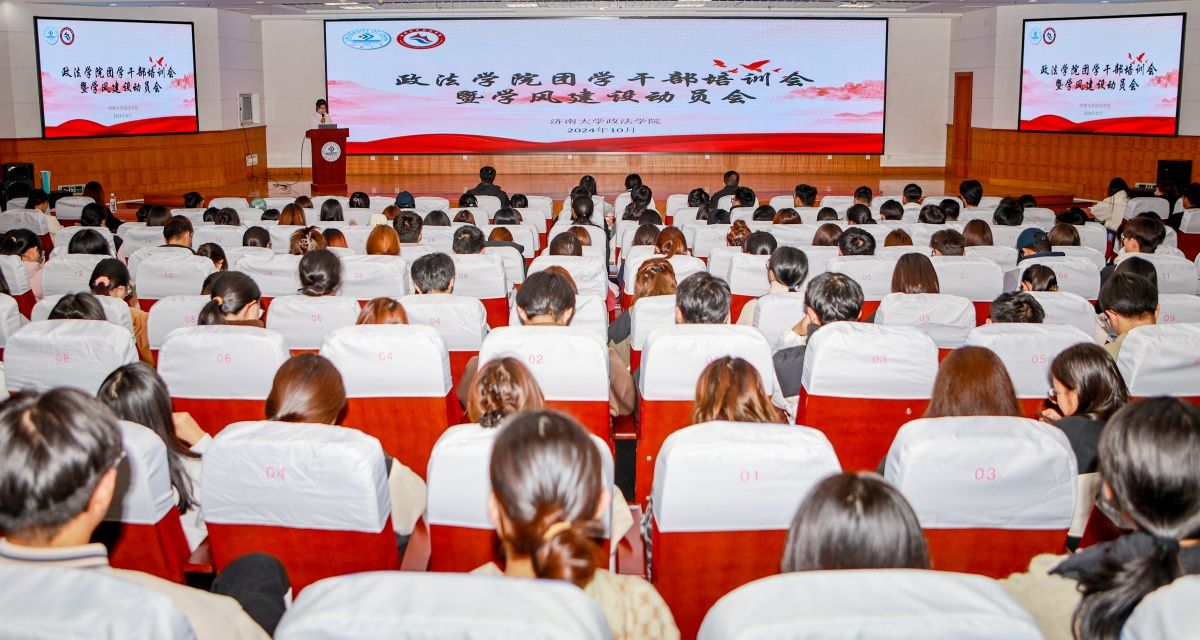 为加强学院团学干部队伍建设,提高团学干部的工作能力和综合素质,促进团学组织之间团结协作,进一步加强学院学风建设,10月25日,政法学院在第二学术报告厅组织开展团学干部培训会暨学风建设动员会。学院学工人员、学生组织主席团、班级团学干部、宿舍长参加会议。法学2305班团支书张晖晗主持会议。
