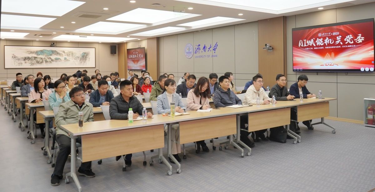 10月29日上午,机关党委在第五学术报告厅举办“强素质·作表率”机关干部创新讲坛第八期,邀请秋叶集团郑远霞老师以《AI赋能办公行政管理提效》为题,为机关各党支部负责党建工作的科级干部及部分教职工进行专题培训和实操演练。