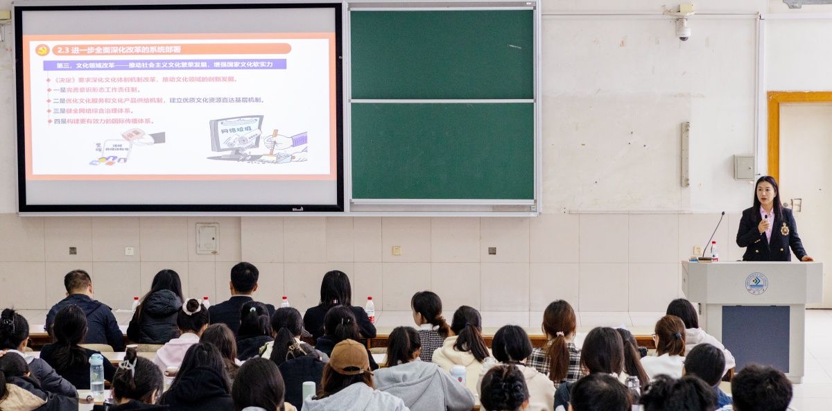 为深入学习贯彻党的二十届三中全会精神,引导师生汲取奋进新征程的磅礴伟力,10月27日,政法学院党委书记李春慧在2教201教室以“深入学习贯彻落实党的二十届三中全会精神,为全面推进中华民族伟大复兴贡献力量”为题为学院师生作宣讲报告。