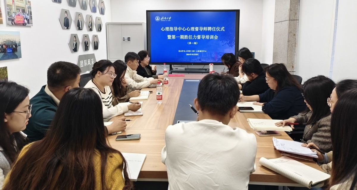 为进一步提高专职心理教师心理咨询胜任力,提高学校心理健康教育专业水平,10月28日下午,党委学生工作部(处)在学翼港湾石榴籽工作室举行心理督导师聘任仪式暨第一期咨询师胜任力督导培训会。中国心理学会注册督导师吴少怡教授、党委学生工作部(处)副部(处)长张晶、生涯指导中心、心理指导中心全体专职教师参加会议。