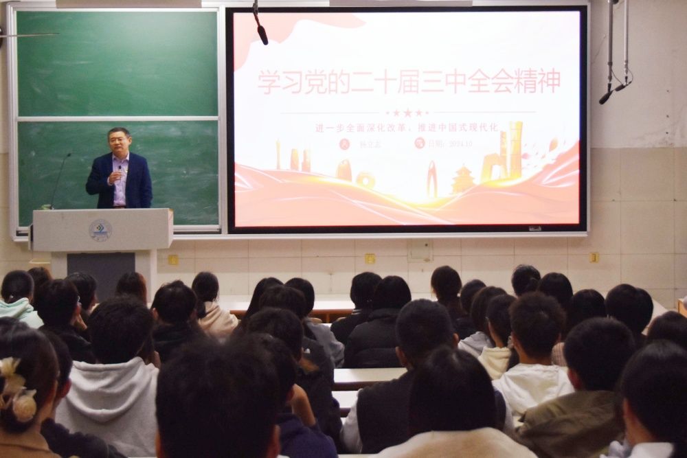 这是一堂生动党课,更是一次精准辅导,让大家对党的二十届三中全会精神有了更全面、更准确、更深入的理解。通过本次授课,同学们纷纷表示要在今后的生活中认真学习、深刻领会、全面贯彻全会精神,把全会精神转化为实际行动,不断创新、不断进取,用奋斗擦亮青春底色,让青春在创新创造中闪光,以更加饱满的热情、更加昂扬的斗志,投身到专业学习中,以实际行动践行“请党放心,强国有我”的青春誓言,为学校和学院高质量发展作出新的、更大的青春贡献,为推进中国式现代化、实现中华民族伟大复兴的中国梦贡献青春力量!