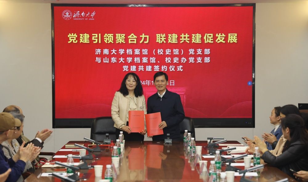 活动中,永利yl23411官网档案馆(校史馆)党支部书记董洁与山东大学档案馆党支部书记赵海担任双方代表并共同签订党建共建协议,双方党支部全体党员参加本次签约仪式。仪式后,两校针对党建共建、业务技能进行座谈。