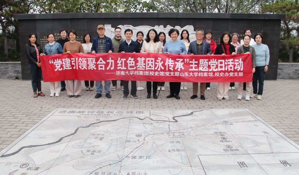 交流座谈后,大家一同参观了《血铸丰碑——济南地区革命英雄人物主题展》、国防教育活动展和“郎东堡垒”红色革命教育基地。在教育基地,全体党员重温了济南战役中跌宕传奇的英雄故事,深刻体会到革命先烈的英勇事迹和牺牲精神。大家一致表示,要铭记革命历史,坚守初心使命,践行“四个好”“两个服务”总要求,充分发挥档案校史研究专长,铸魂育人,将红色基因一代代传承下去,赓续红色血脉,厚植家国情怀。