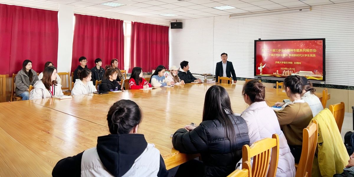 为推动学习贯彻党的二十届三中全会精神走深走实,进一步做好入党积极分子、党员发展对象的培训和教育工作。11月7日,音乐学院党委举行2024年下半年入党积极分子、党员发展对象培训开班仪式。学院党委书记孙翔玲、组织员王军、学生党支部书记王栋以及全体入党积极分子和党员发展对象出席,会议由组织员王军主持。