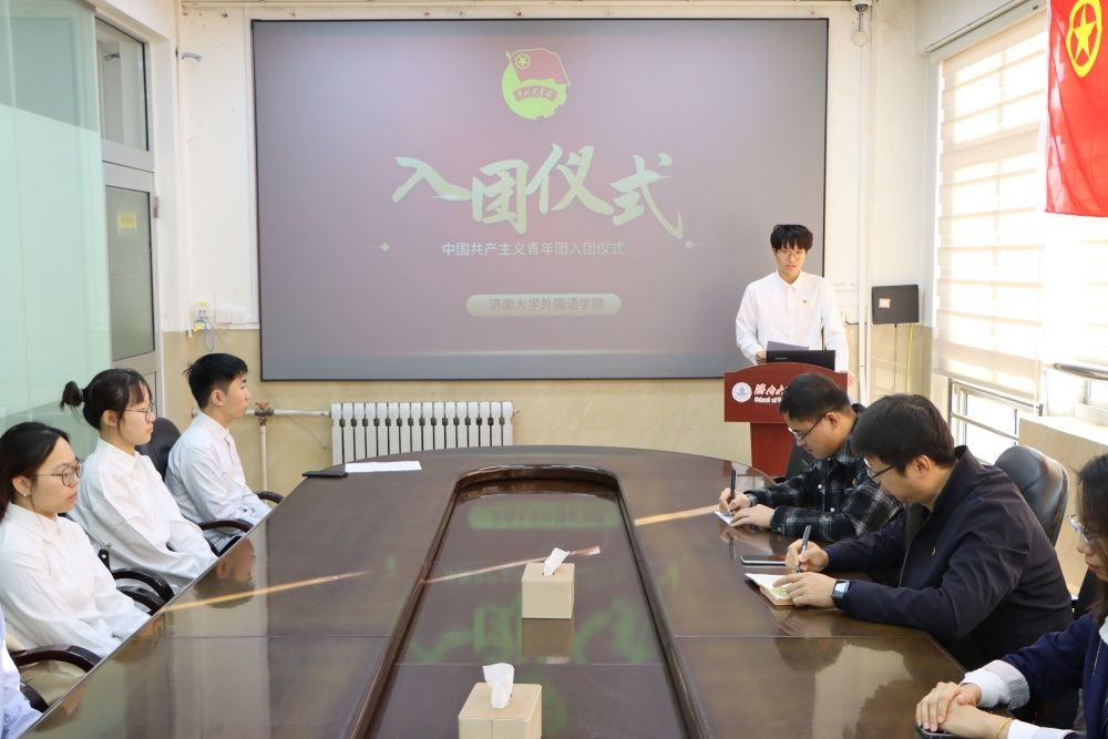 为追寻党的历史足迹,践行团的初心使命,发出为共产主义事业而奋斗的青春誓言,11月22日,外国语学院在第一教学楼608会议室举行2024年下半年新发展团员入团仪式,外国语学院副处级组织员李春海,学生办公室主任刘毅、团委书记吴杨洋、辅导员王艺笑、优秀团员代表和全体新发展团员参加仪式。会议由郭智昊主持。