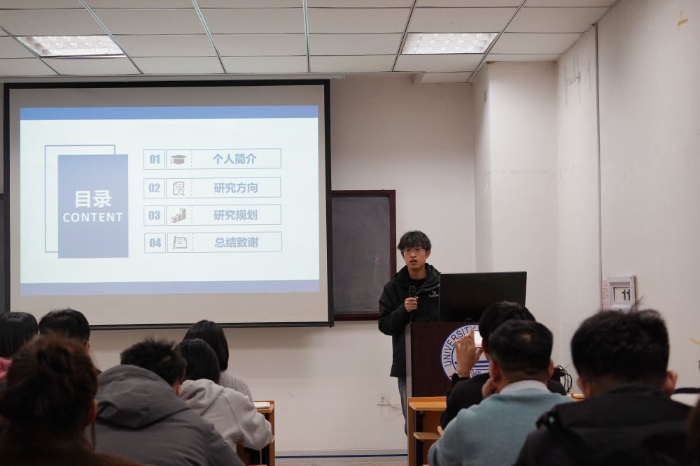 论坛伊始,研究生辅导员郭冉介绍了本次论坛的目的和意义,希望同学们能通过本次论坛增进学术交流,拓宽学术视野,加强学术联系。随后,李超以《生物质高值化利用的研究》为题分享了他的科研成果和学术心得。他提到,在科研过程中,找到适合自己的学习方式至关重要,强调每个人对学习的习惯和方式都有所不同,要敢于尝试,找到最适合自己的方法。紧接着,孙部庭以《去发光,而不是被照亮》为题从硕士研究生的视角向同学们分享了他的科研探索之路。孙部庭表示,在科研入门阶段,做好长期规划和设定短期目标非常重要。他建议同学们尽早根据毕业要求和未来发展目标制定战略,树立持续学习的信念和深度钻研的心态,向下扎根,向上发力。