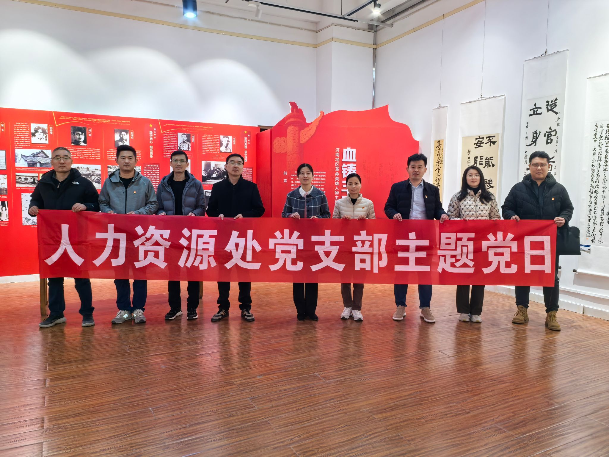 为了更好地坚定党员理想信念,弘扬革命英雄主义精神,12月6日下午,人力资源处党支部组织党员到学校舜道艺术馆参观“血铸丰碑——济南地区革命英雄人物主题展”。