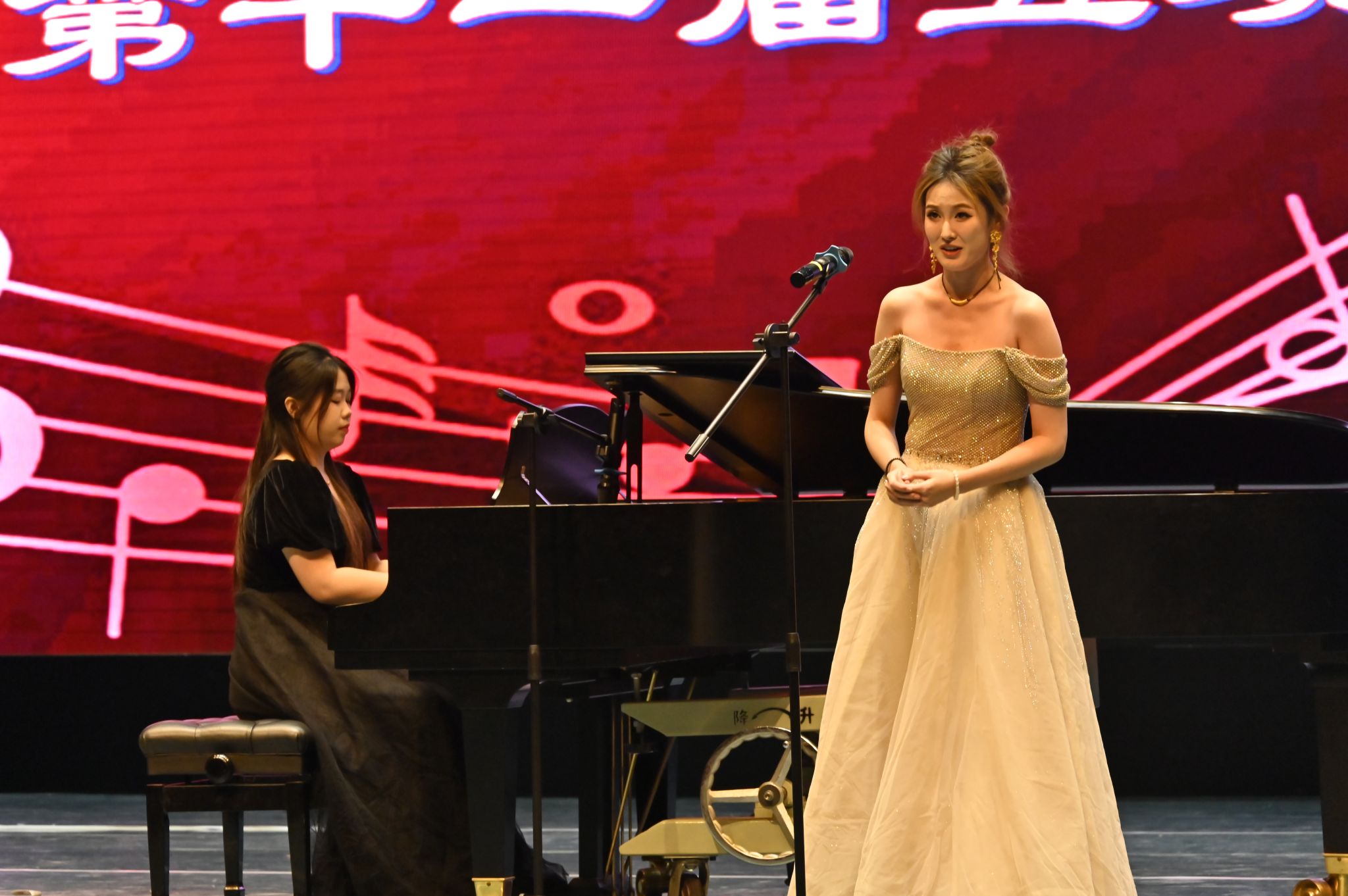 单项钢琴伴奏组一等奖得主杨雯斐所呈现的是《围绕着我崇拜的人儿》,悠扬的琴声与谭彤阳那柔和且极具表现力的嗓音相得益彰。二人默契合作,将这首经典曲目诠释得精妙绝伦,深深触动了观众的心灵,赢得了观众阵阵掌声。