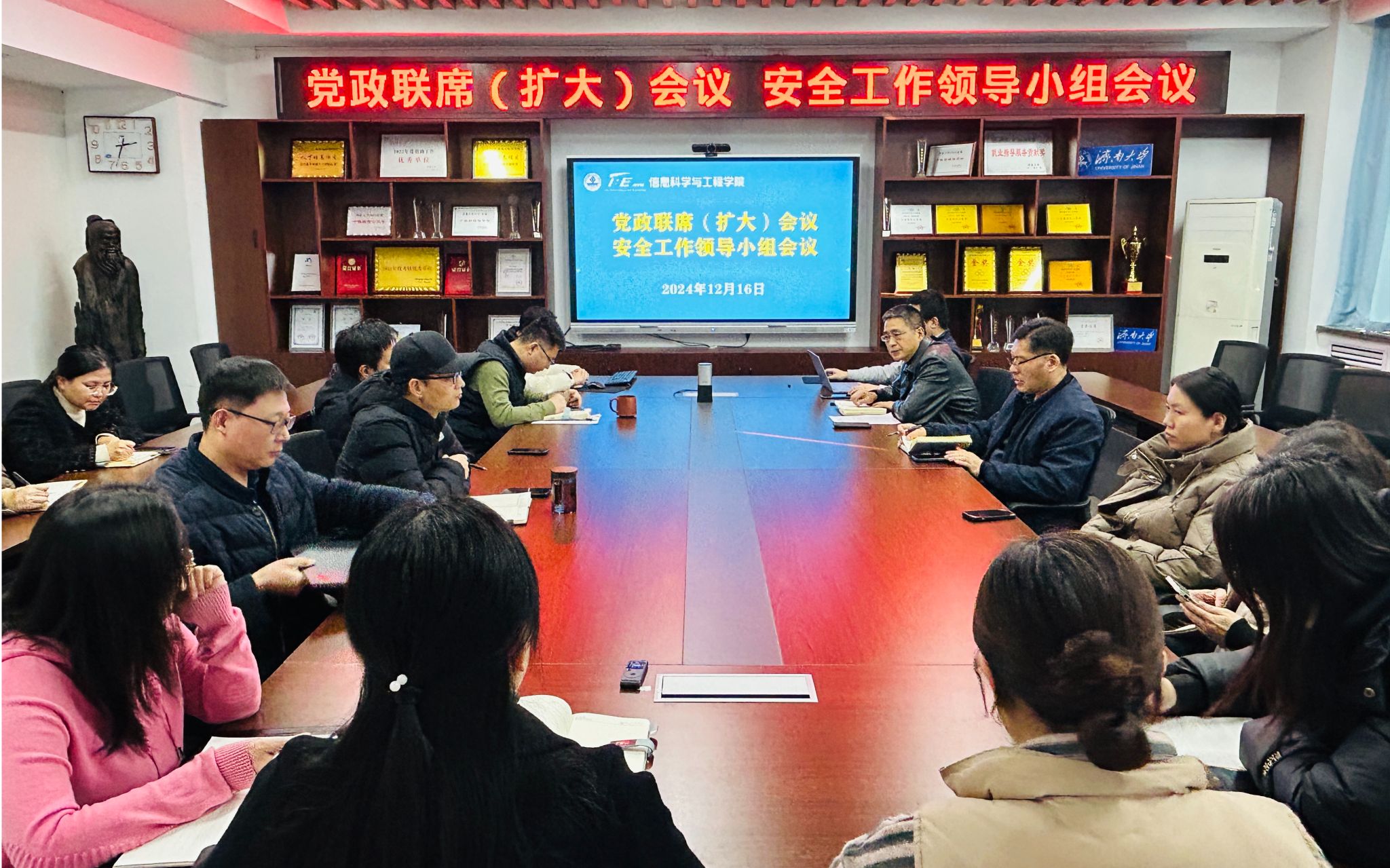为进一步加强学院安全稳定工作,筑牢安全防线,提升师生安全意识,确保学院工作平稳有序,12月16日,信息科学与工程学院召开党政联席(扩大)会议暨安全工作领导小组会议,部署安全稳定工作。学院领导班子成员、各系主任、科研平台负责人、科级干部、各实验室、机房负责人以及全体学工人员参加会议。