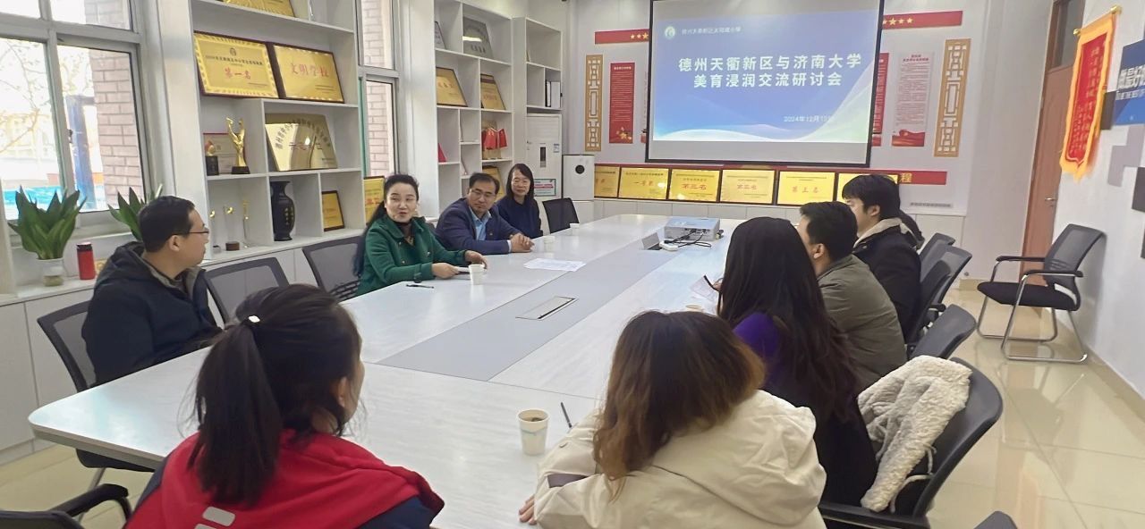 为落实《教育部关于全面实施学校美育浸润行动的通知》要求,进一步加强学校美育工作,永利音乐学院、美术与设计学院自觉将美育纳入立德树人的课程思政体系中,把价值引领、艺术熏陶、美育提升等全面融入各类校园活动中,引导青年学生近距离感受到中华艺术的源远流长与无穷魅力,使大学生向善、向美、向未来,立志争当美育先锋。近日,音乐学院、美术与设计学院组建美育浸润工作组,走进德州天衢新区,全面实施美育浸润行动,携手当地教育局领导、教研员与中小学生一起开展美育宣传、艺术展演、调研交流等美育活动。音乐学院副院长王建成、美术与设计学院院长助理桑曙光、音乐学院音教系主任杨瑞教授、键盘系副主任张若冰及部分学生参加了活动。