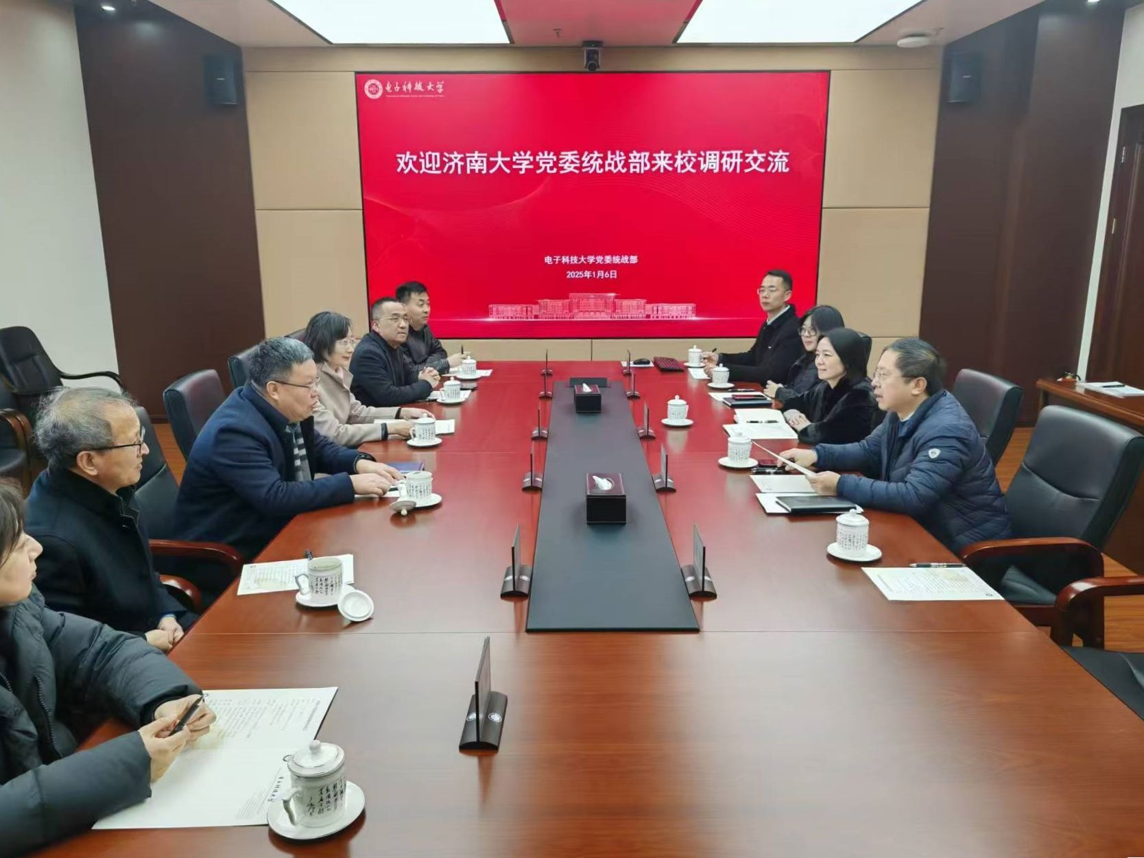 为深入学习贯彻党的二十届三中全会精神,贯彻落实习近平总书记关于做好新时代党的统一战线工作的重要思想,拓展对台港澳交流工作思路,1月6日,学校党委常委、统战部部长、宗教事务办公室主任、台港澳事务办公室主任徐庆国一行赴电子科技大学开展工作调研。美术与设计学院党委书记陈春锋,学校民盟支部主委、数学科学学院教授孙红卫,党委统战部副部长兼台港澳事务办公室副主任王秀清,文学院党委副书记、副院长潘颖一同调研。
