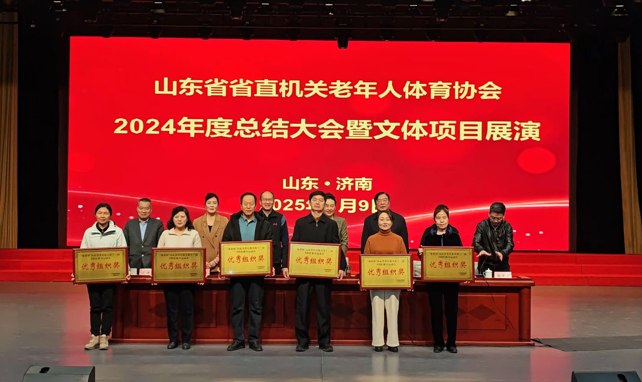 1月9日,山东省省直机关老年人体育协会2024年度总结大会暨文体项目展演在颐心苑举行。会上对山东省省直机关老年人体育协会2024年度获奖单位和获得表扬的个人代表进行了颁奖,并进行了精彩的文体项目展演。永利yl23411官网离退休工作处获得《“体彩杯”山东省省直机关第十一届夕阳红健身运动会》优秀组织奖,文体科科长王鸿雁获得个人通报表扬。