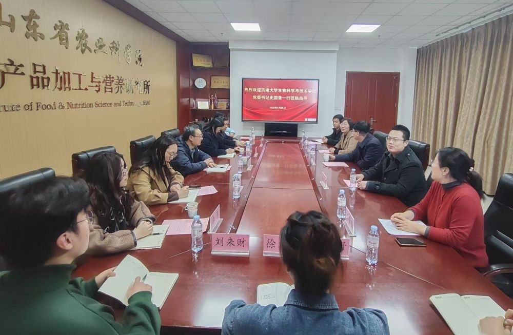 为进一步加强与高水平科研院所科技合作,不断推进研究生培养质量提升,1月20日,生物科学与技术学院党委书记史国普、院长秦晓春一行赴山东省农业科学院开展调研交流活动。山东省农业科学院党委委员、副院长刘开昌出席活动,科技管理处、作物研究所、玉米研究所、农产品加工与营养研究所相关负责同志、学校生物科学与技术学院(以下简称“学院”)班子成员及相关研究领域教师代表参加活动。