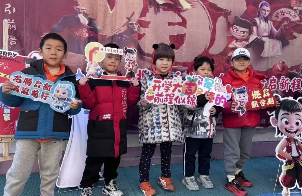 晨曦初照,朝阳倾洒下首缕金光,新学期的序章悠然开启。活动从幼儿园门口就开始了惊喜连连。长长的红毯两侧,摆放着哪吒造型的欢迎立牌,孩子们牵着家长的手穿过,仿佛步入了神话世界,开始了他们的新征程。老师们装扮成的哪吒等卡通人物热情迎接,与孩子们欢乐留念,老师们还送上新学期的第一份礼物,传递着幼儿园“爱的教育”的主题信念,温暖与关怀在每一个细节中流淌。