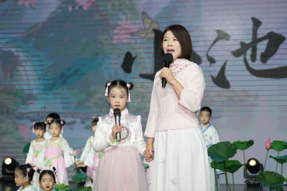 幼儿园合唱团表演了今年春节登上央视传统文化春晚舞台并收获满满赞誉的节目“《小池》”,他们的每一个动作、每一个笑容都传递着纯真与美好。孩子们精彩的表演,赢得了现场阵阵掌声,成为开学典礼上一道道亮丽的风景线。