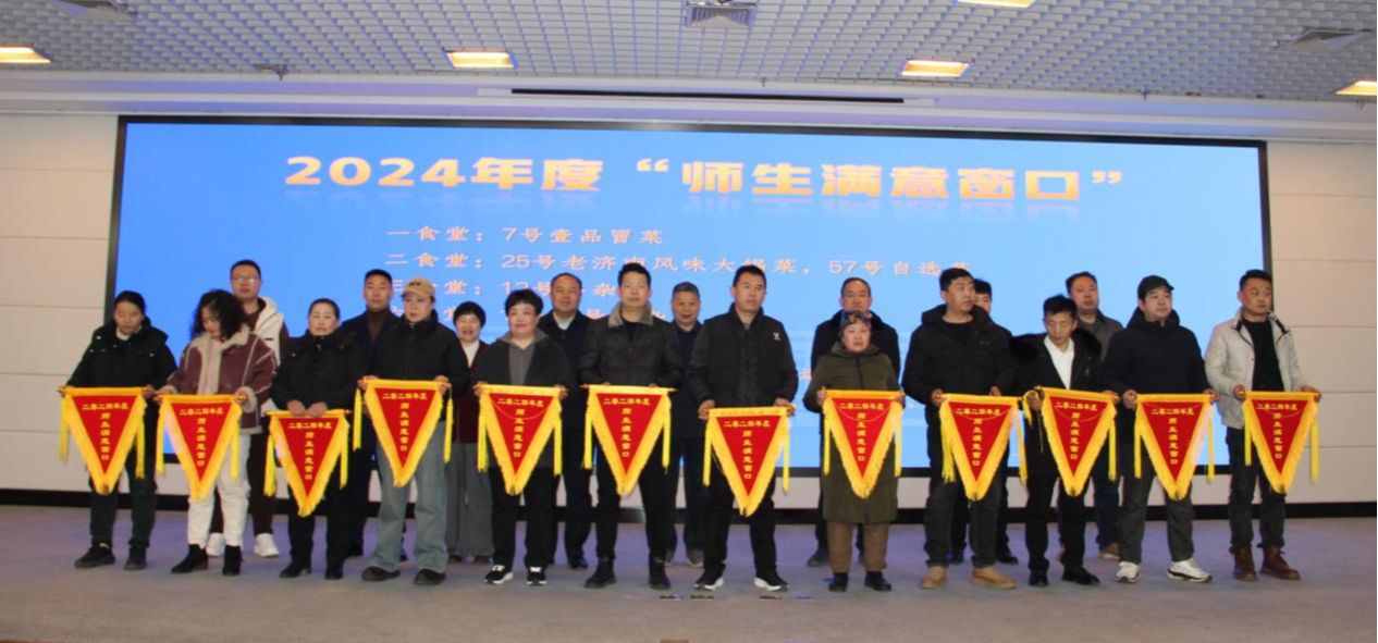 栾志强宣读了2024年度“我最喜欢的学校美食和窗口”评选活动获奖名单,活动通过线上线下评选和领导小组评定等方式,共表彰优秀食堂3个,十佳美食10个,师生喜爱菜品74个,师生满意窗口43个。饮食工作责任重大,使命光荣,全体饮食服务人员在新的一年里定将再接再厉,从严从实抓好食品安全工作,用心用情服务校园师生。