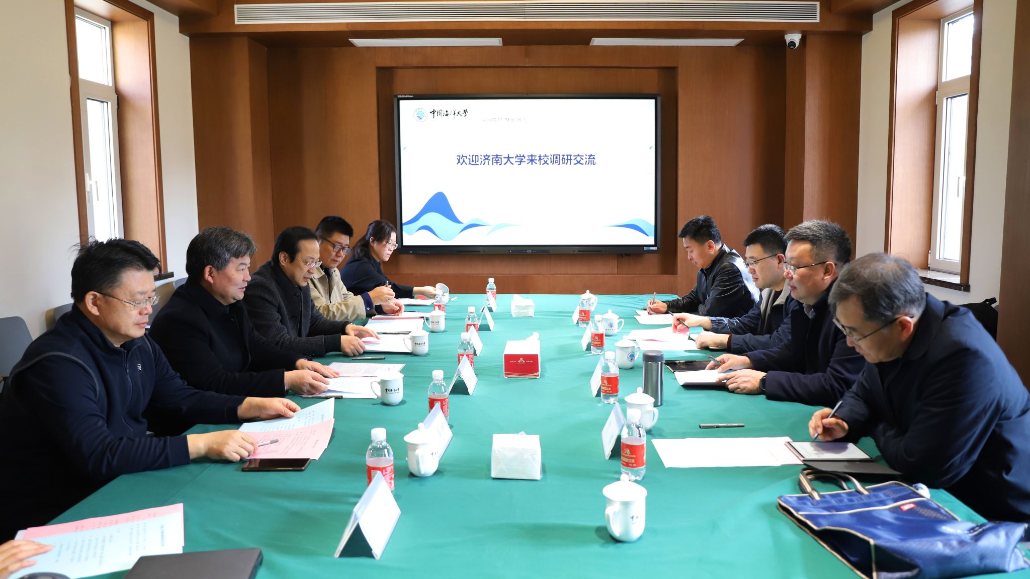 3月11日上午,徐庆国一行到中国海洋大学交流学习。中国海洋大学党委常委、统战部部长陈鷟对徐庆国一行的来访表示热烈欢迎。座谈会上,陈鷟简要介绍了学校基本情况,随后与会人员一同观看了学校宣传片《蓝色华章》以及统一战线宣传片《统一战线与中国海大》。统战部副部长王俊玲详细介绍了学校统战工作的整体情况,医药学院党委书记王震分享了学院统战工作的开展经验,致公党海大支部主委、管理学院教授柴寿升介绍了支部建设情况,国际合作与交流处副处长、港澳事务办公室副主任、台湾事务办公室副主任刘泰就港澳台工作开展情况进行了介绍。双方就相关工作展开了热烈讨论。座谈会后,调研团一行参观了海洋生物博物馆和一多楼,深入感受中国海洋大学的文化底蕴与人文内涵。