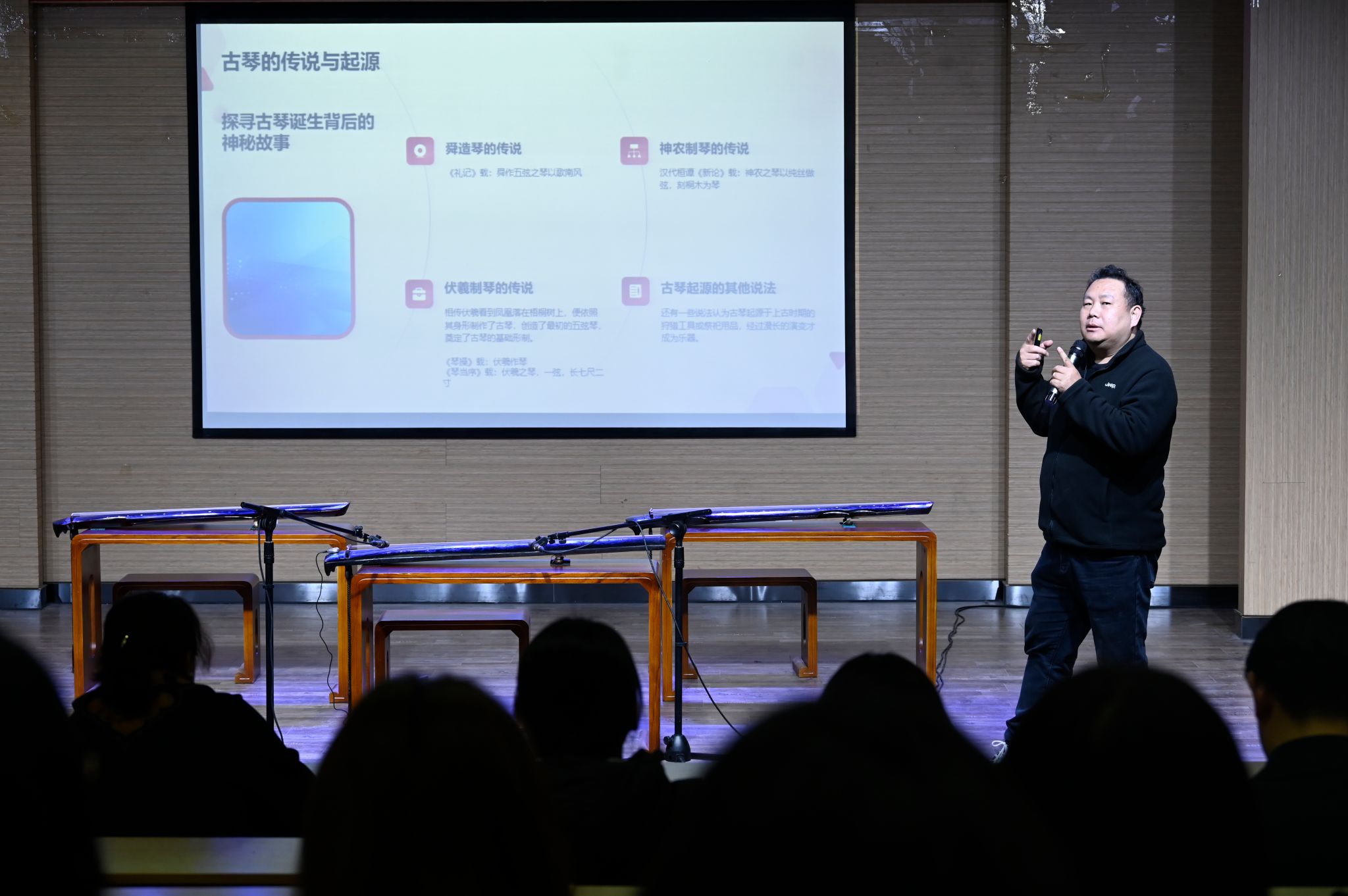 4月2日,齐鲁音乐文化讲坛2025年第一期——”古琴之器与技”主题讲座举行,奏响了学校美育新乐章。此次讲座由济南市非物质文化遗产古琴斫制技艺代表性传承人李科担任主讲,张馨怡、薛英和郭玉芬老师的独奏、李艺馨和袁亦木的合奏倾情加盟,共同为观众奉献了美育盛宴。来自音乐学院、马克思主义学院、文旅学院、文学院、国际交流学院、外国语学院等学院的师生聆听了讲座,为此次音乐讲坛会增添了更多美育色彩。