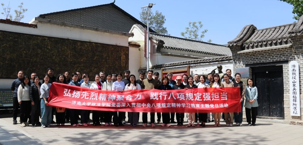 为扎实开展深入贯彻中央八项规定精神学习教育,缅怀革命先烈,传承红色基因,凝聚奋进力量,4月15日,政法学院党委赴济南战役山东兵团指挥所旧址开展“弘扬先烈精神聚合力 践行八项规定强担当”学习教育主题党日活动。学院领导班子成员,各党支部书记、委员,教师党员代表参加活动。