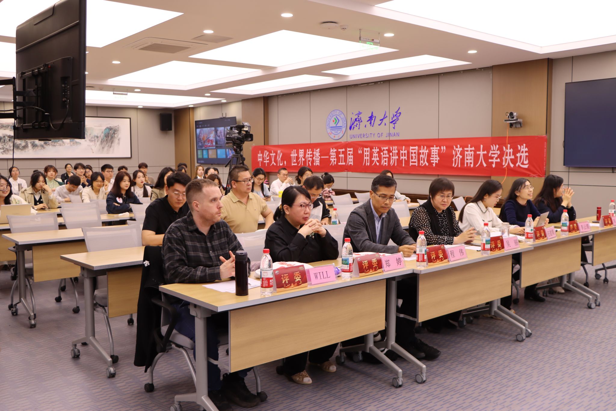 4月27日,由共青团永利yl23411官网委员会主办,外国语学院承办的永利yl23411官网首届外语能力大赛之“用英语讲中国故事”演讲比赛举办。本次比赛邀请了外国语学院吴丽、李云霞、程伟、郑婷、刘琳、外籍教师Will和新航道济南学校资深讲师、2018届毕业生校友任建霞担任评委。外国语学院副院长王勇、新航道济南学校市场部经理李强出席活动。