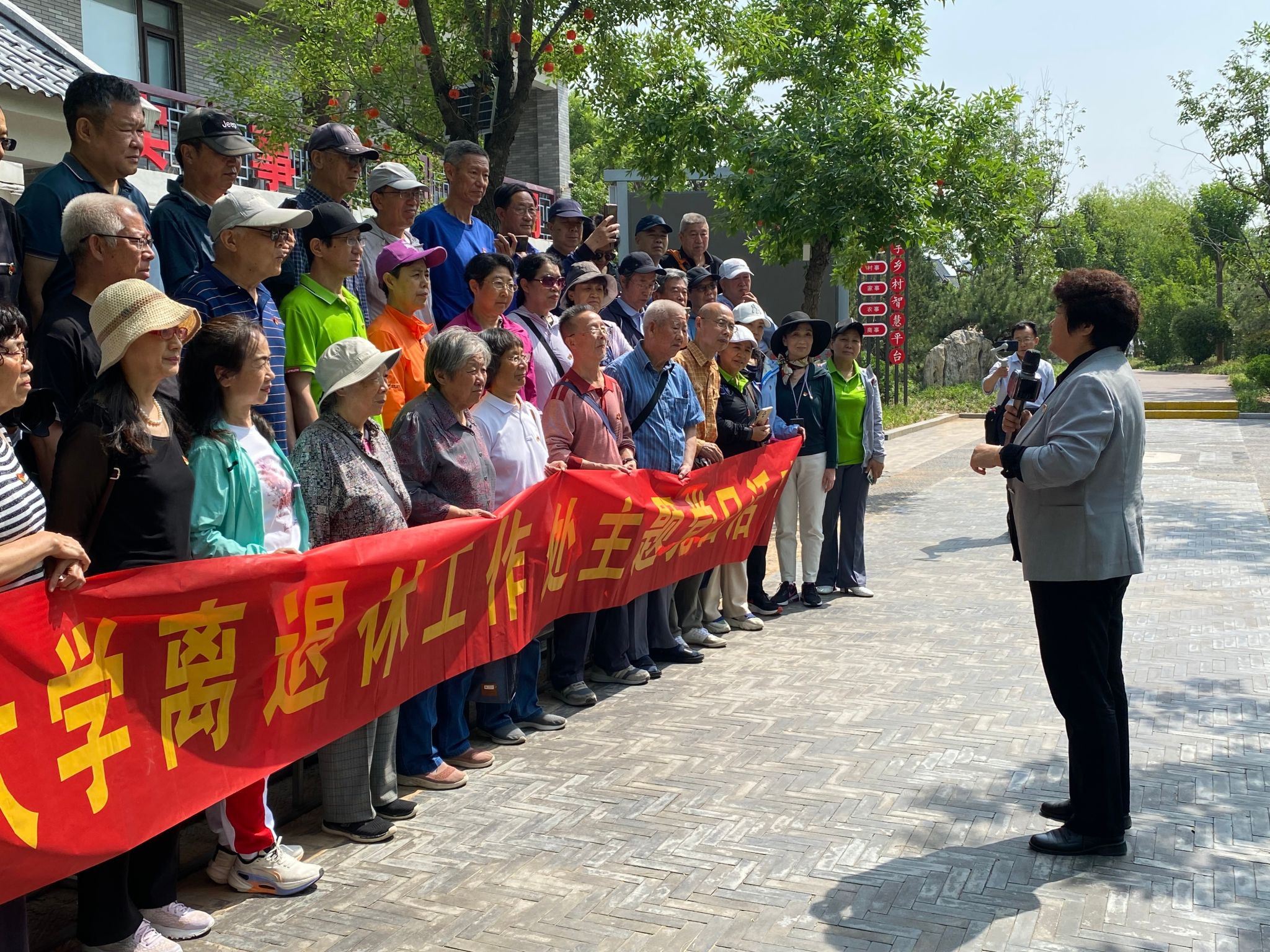 在三涧溪村,老同志们参观了三涧溪村村史馆,了解村子在党建引领下从落后村庄到乡村振兴示范村的蜕变历程,学习其在基层党组织建设、乡村治理、产业发展等方面的经验,还实地走访老村和特色产业项目,感受乡村振兴成效。三涧溪村党委书记高淑贞与老同志见面交流并合影留念,期望高校老同志能多研究农村,为乡村振兴建言献策、提供智力支持。老同志们被高淑贞的情怀信仰和实干精神所感动,她带领村民努力奋斗的历程,正是我们党的初心写照。活动期间还举行了即兴红歌演唱会,各支部分别演唱了《东方红》《山丹丹花开红艳艳》等歌曲。最后党员们齐声高唱《没有共产党就没有新中国》,抒发爱党爱国情怀。