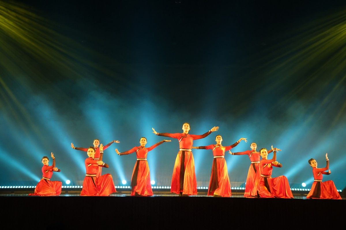 “课堂篇:峥嵘岁月”是对同学们大学四年各项专业基本功学习训练成果的一次集中展示。现代舞凭借动作形式的创新突破与多元风格的深度融合,彰显出极具先锋性的艺术气质;古典舞以细腻的肢体语言、优雅的舞姿形态,诠释着东方美学的独特魅力;剑舞则以雕塑般的静穆之美与“形止神驰”的深邃韵味,尽显中华传统文化的深厚底蕴;蒙古族萨吾尔登、藏族牧区组合、傣族舞曲以及维吾尔族舞蹈赛乃姆等则淋漓尽致地演绎了中国民间舞的独特风情,更通过舞蹈的语言将铸牢中华民族共同体意识的种子撒播在大学生们心中。
