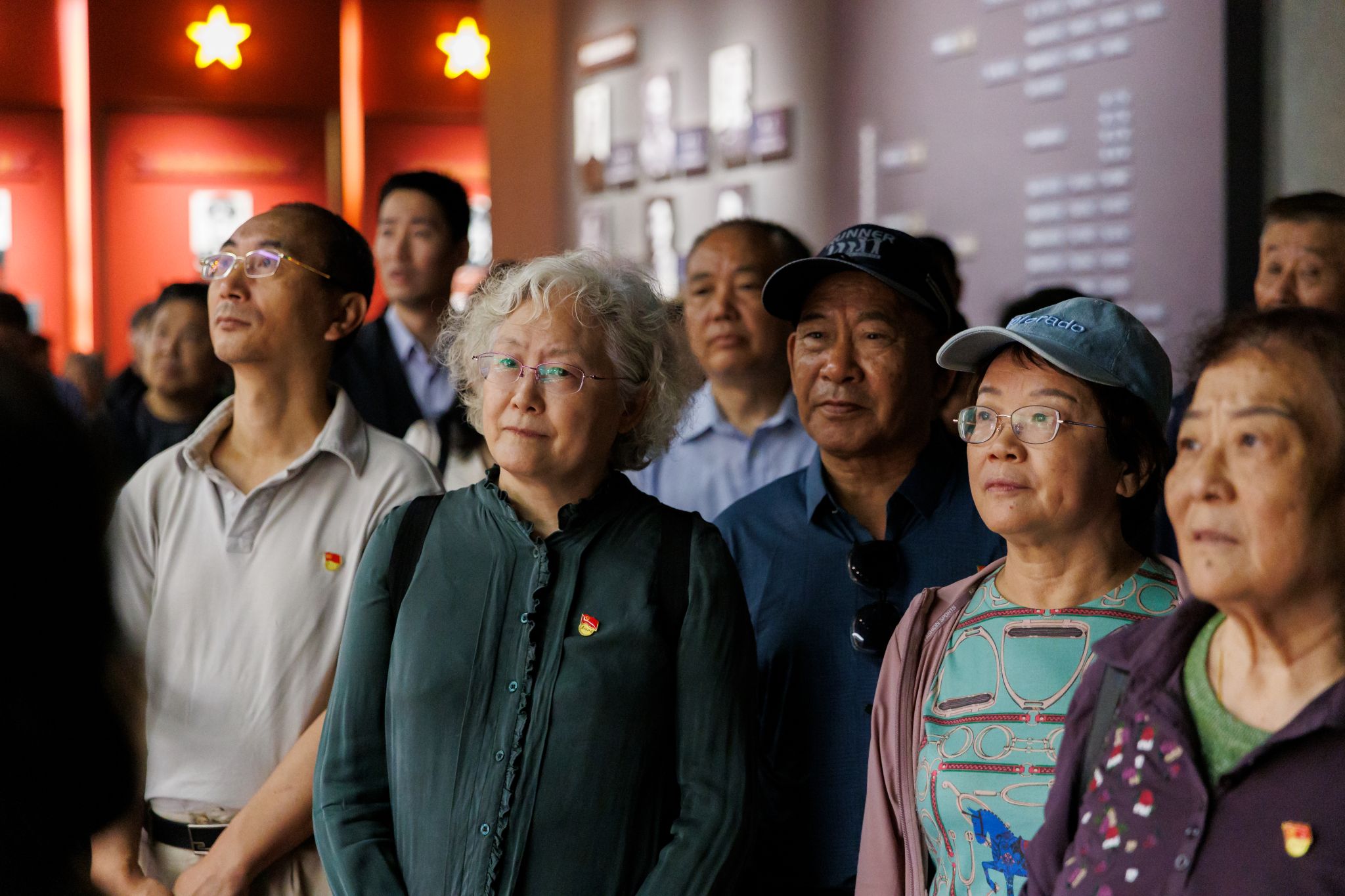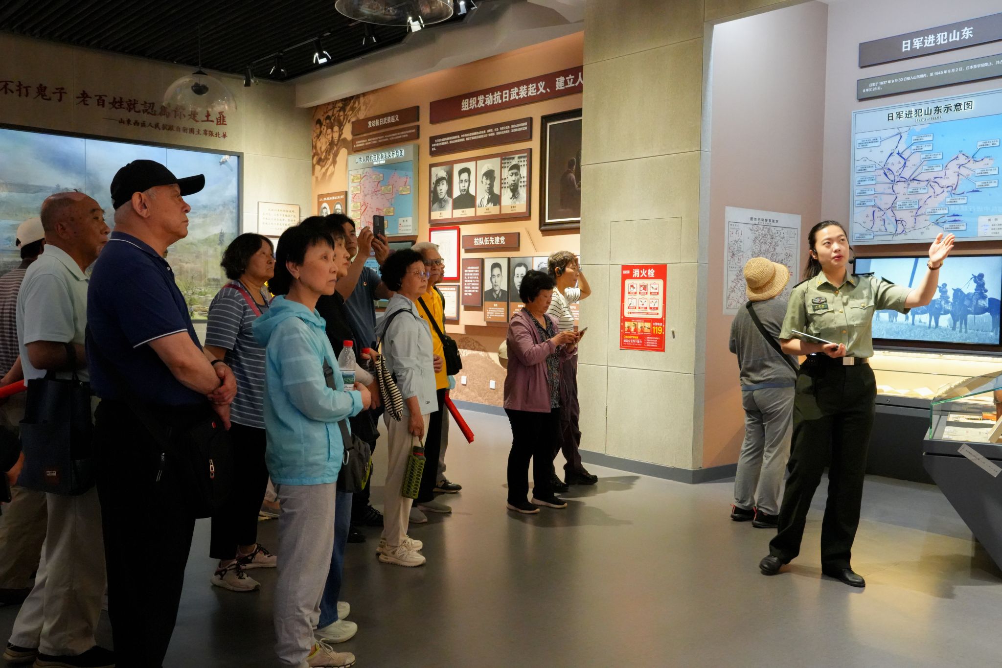 在参观山东老战士纪念广场时,讲解员给老党员们详细讲解了“齐鲁御寇血铸长城”“向北发展向南防御”“雄狮百万转战全国”“北上南下开辟新区”“保家卫国不辱使命”“集体转业再立新功”“沙海女兵戈壁母亲”7个展厅展出的图片、图表、实物等详细内容。通过场景再现和多媒体终端相结合的形式,让老党员同志们深刻了解自抗日战争到新中国成立初期,山东老战士的英雄事迹和伟大的历程。