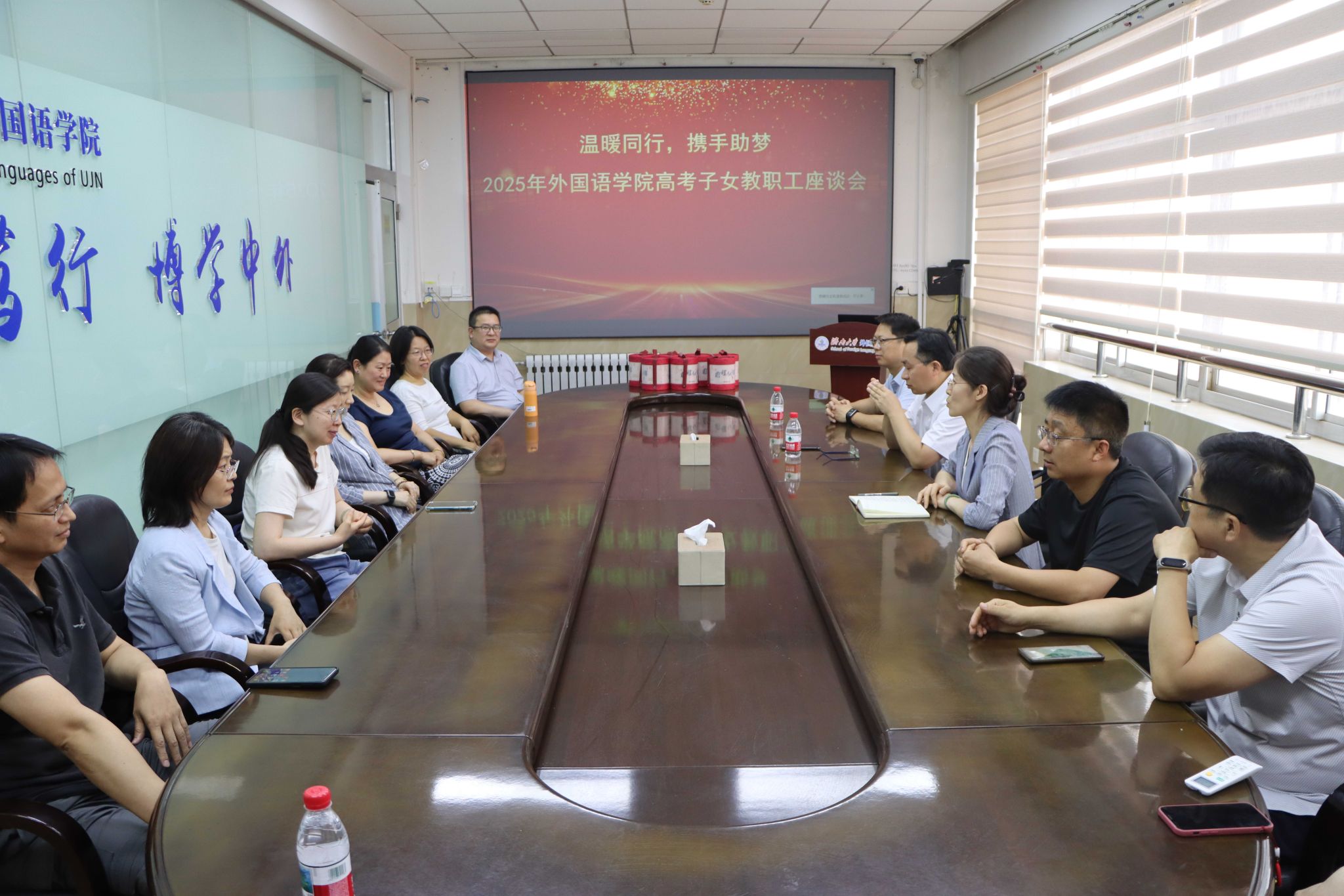 2025年高考即将到来,5月27日下午,外国语学院举行“温暖同行,携手助梦”高考子女教职工座谈会,为即将参加高考的教工子女送上暖心祝福。学院领导班子成员、工会委员以及7位高考子女教职工参加活动。