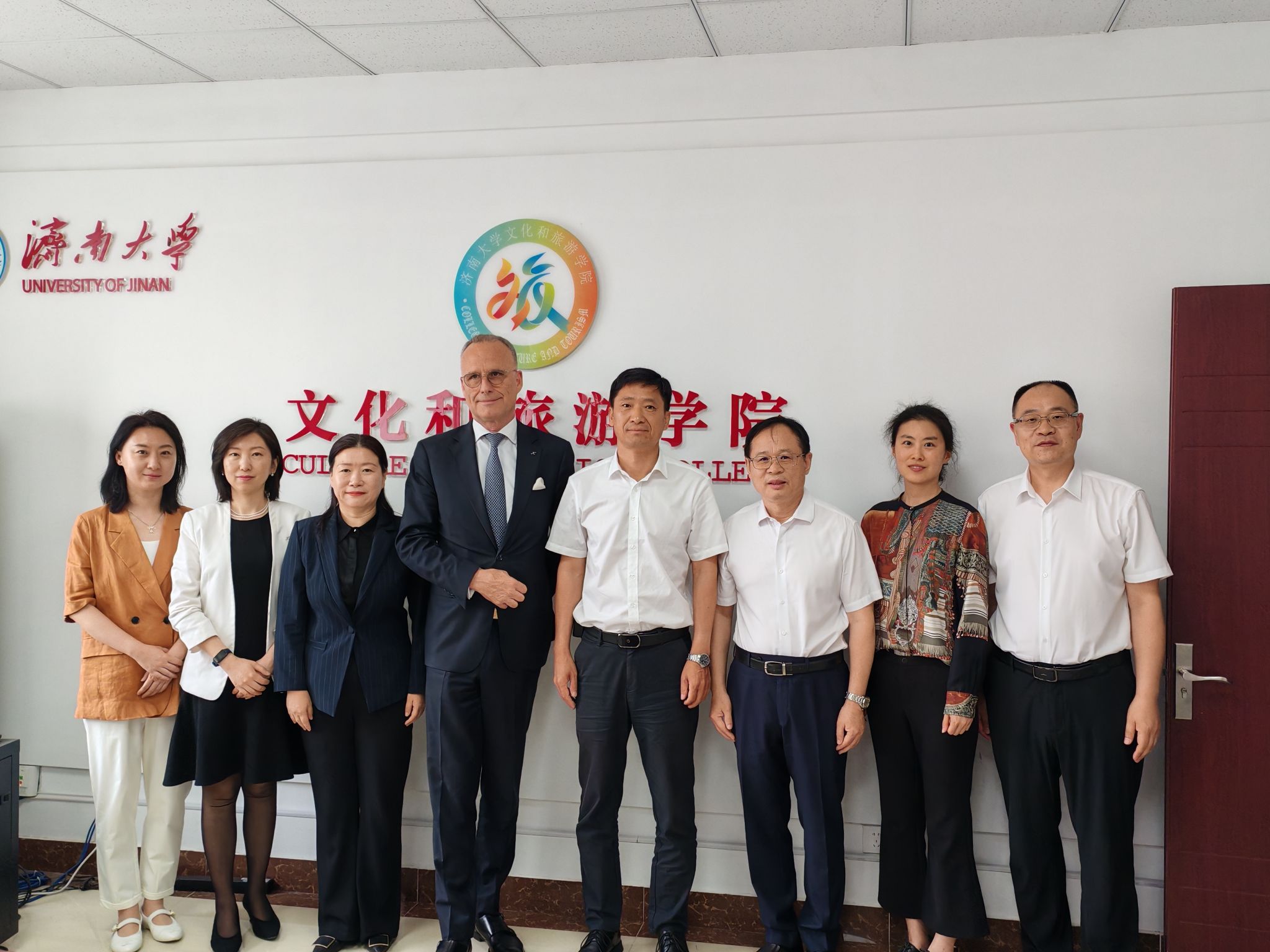 5月28日,济高控股酒管公司副总、96届优秀校友程洁,济南凯宾斯基酒店总经理Mr. Markus一行到访文化和旅游学院,开展以“校企协同创新、共育文旅人才”为主题的座谈交流。文化和旅游学院党委书记孟德洋、院长刘建波及教师代表参加座谈会。
