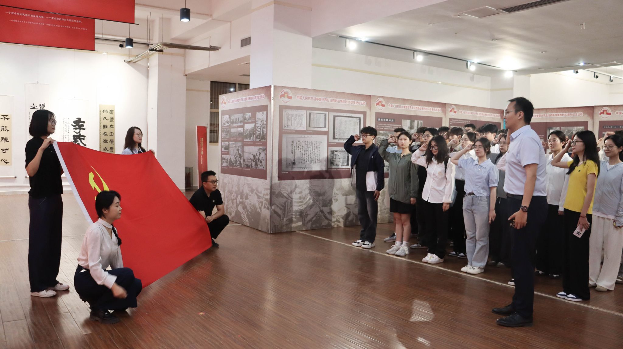 参观结束后,全体党员面向鲜红的党旗,举起右拳,庄严宣誓。铿锵的誓言、坚定的承诺,饱含着对党的无限忠诚与热爱,更宣示了党员们坚定不移的政治信念和矢志不渝的奋斗决心。