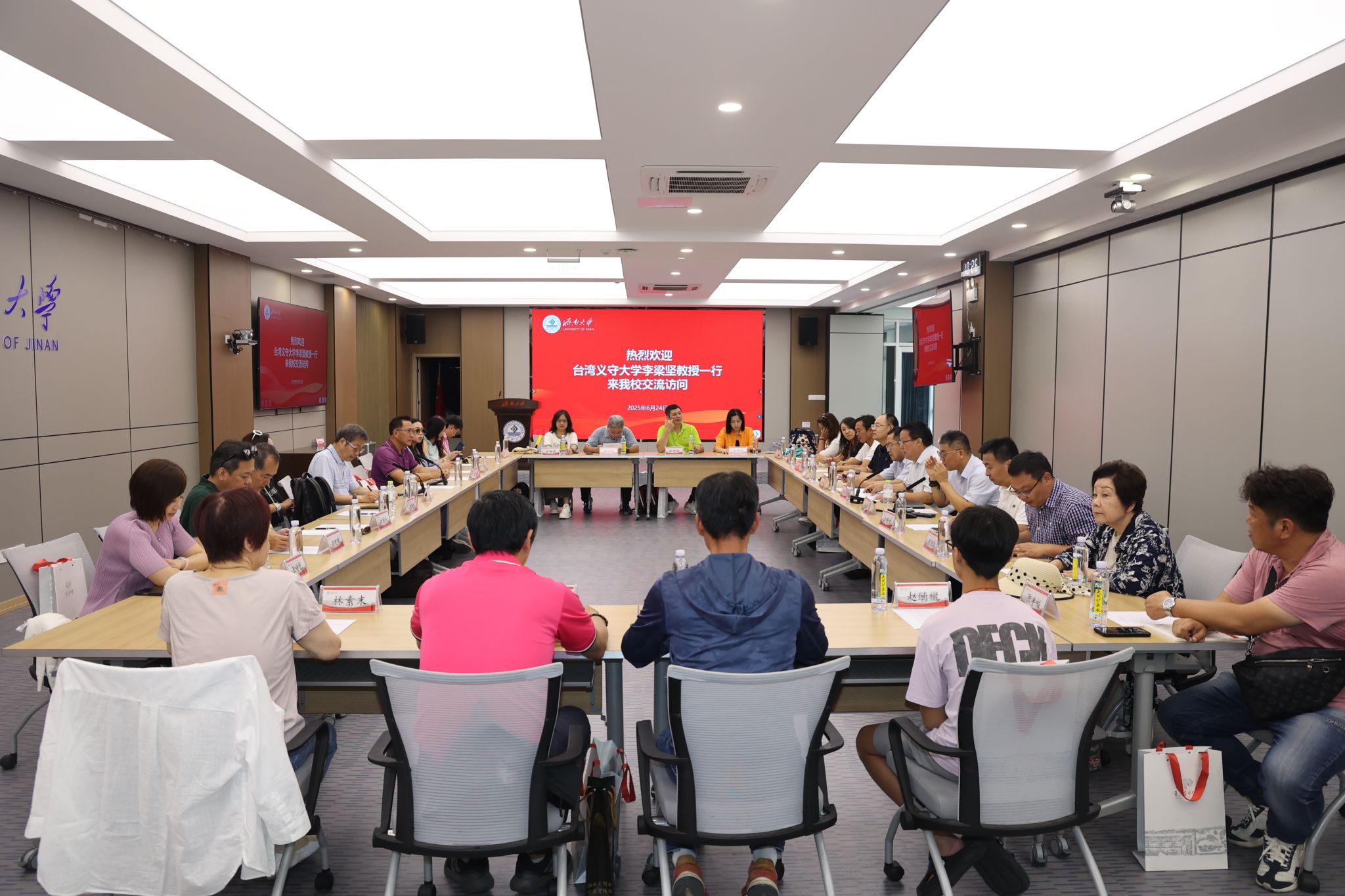 6月24日,台湾义守大学李梁坚教授带领该校EMBA校友代表团到永利访问交流。学校党委常委、统战部部长、台港澳事务办公室主任徐庆国,济南市台办交往交流处处长赵立成出席活动,学校商学院、土木建筑学院、文化和旅游学院、台港澳事务办公室相关负责同志参加座谈。