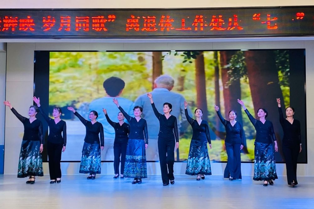 为热烈庆祝中国共产党成立104周年、纪念抗日战争胜利暨世界反法西斯战争胜利80周年,传承红色基因,弘扬爱国精神,7月1日,离退休工作处“党旗辉映 岁月同歌”“庆七一”社团展演活动在多功能厅举行。十个离退休文体社团齐聚一堂,以精彩纷呈的文艺演出和作品展示,深情回顾党的光辉历程,致敬伟大抗战精神,展现出老同志们昂扬向上的精神风貌。