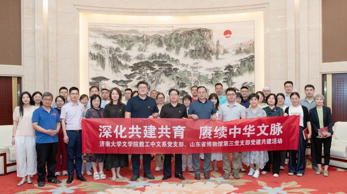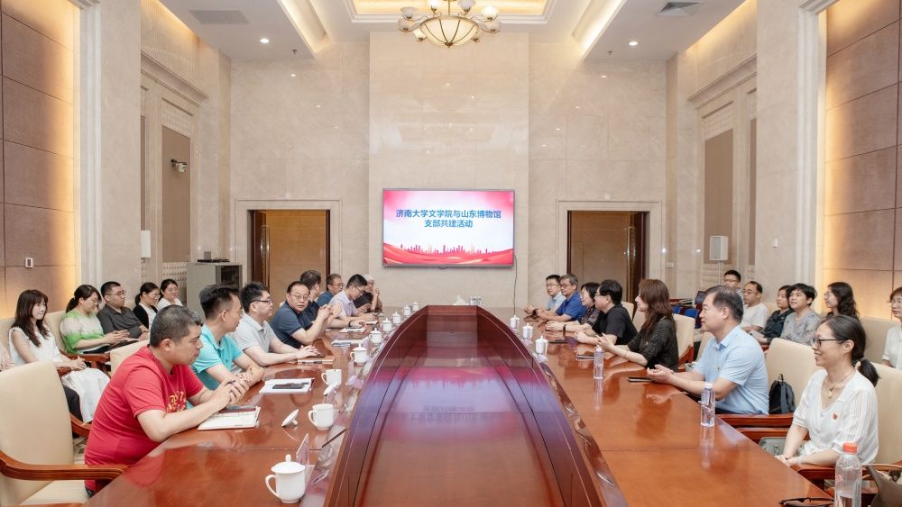 为构建跨领域、多维度的党建共建体系,7月8日,文学院教工中文系党支部与山东博物馆第三党支部在山东博物馆联合开展主题为“深化共建共育 赓续中华文脉”的党建共建活动。山东博物馆党委专职副书记卢朝辉,党委委员、副馆长高震,文学院党委书记董海军,副书记、副院长潘颖,以及双方有关负责人、支部党员参加活动。