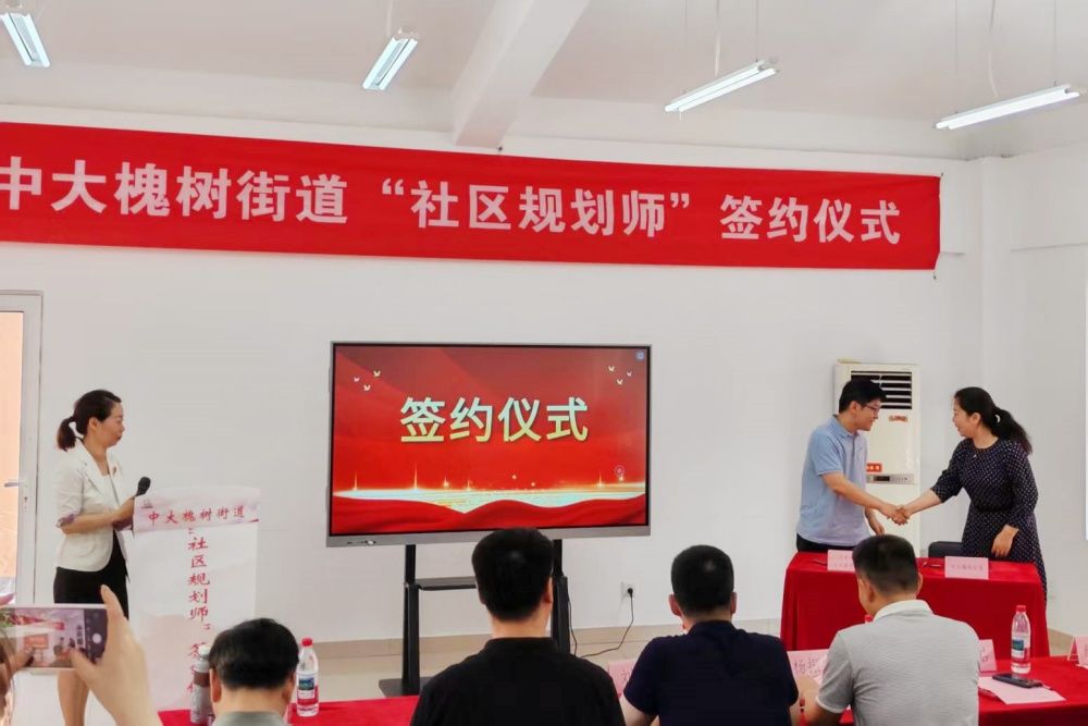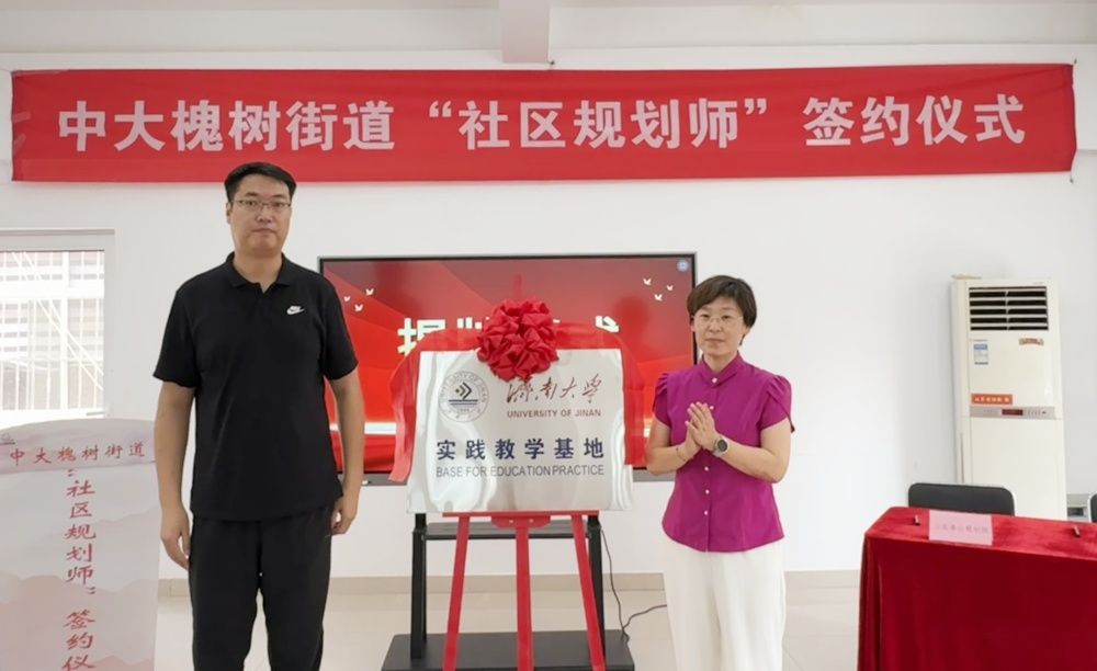 土木建筑学院副院长杨涛春与中大槐树街道办事处主任王洁签署合作协议。学校教务处副处长郝晓艳与槐荫区融媒体中心副主任刘鹏共同为“本科实践教学基地”揭牌。槐荫区委组织部副部长杨振宇与槐荫区委社会工作部副部长刘浦为“社区规划师实践基地”揭牌。