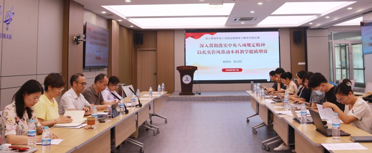 最后,党支部书记陈贞翔以“深入贯彻中央八项规定精神,以扎实作风带动本科教学提质增效”为题讲授专题党课,从提高政治站位、严格自我要求、自觉对标对表等三个方面号召大家要严格落实中央八项规定精神,扎实做好各项工作,通过改进工作作风、提升服务质量、厉行勤俭节约、加强廉洁自律等措施,扎实推进教育教学工作高质量发展,为学校高质量发展贡献教务力量。