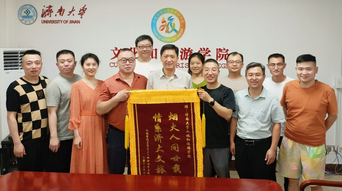 座谈会上,校友们逐一分享了毕业后的工作经历和人生感悟。并向学院赠送了一面写有“烟火人间廿载,情系济大文旅”的锦旗,表达对母校和老师们的感激之情。校友们纷纷表示,无论走到哪里,烹高021班的同学们始终以母校为荣,并将继续关注和支持学院的发展。孟德洋代表学院接受锦旗,并为校友们赠送了学院精心准备的纪念品,希望校友们永远铭记母校的培育之恩,在未来的人生道路上继续砥砺前行。