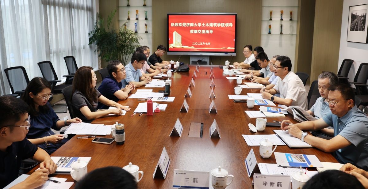 7月21日上午,土木建筑学院院长谢群、副院长杨涛春,学院教师代表刘燕、冯岩、王蕾、赵峰、韩毅、张广才一行赴济南市政设计集团开展合作交流。集团副总经理、道桥院院长张德华,集团副总工程师、岩土工程总公司总经理赵庆亮,勘测院工程测绘所所长崔信国,技术质量中心研发部部长于芳泉,技术质量中心研发部资深专家李军,道桥院桥梁所所长于增明,道桥院城市道路所所长侯登高,建筑院院长李新磊,道桥院地下空间所总工程师郑召怡,水环境院水处理所副所长王磊出席活动。
