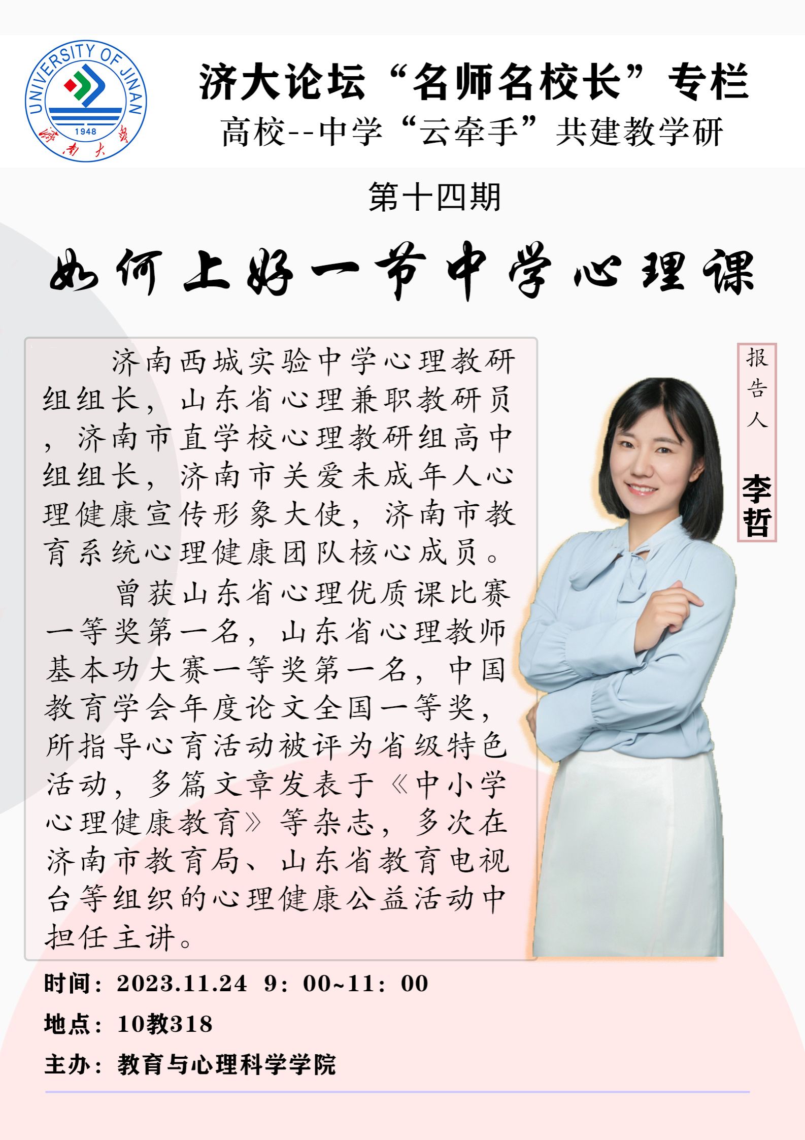 济大论坛“名师名校长”专栏第十四期:如何上好一节中学心理课