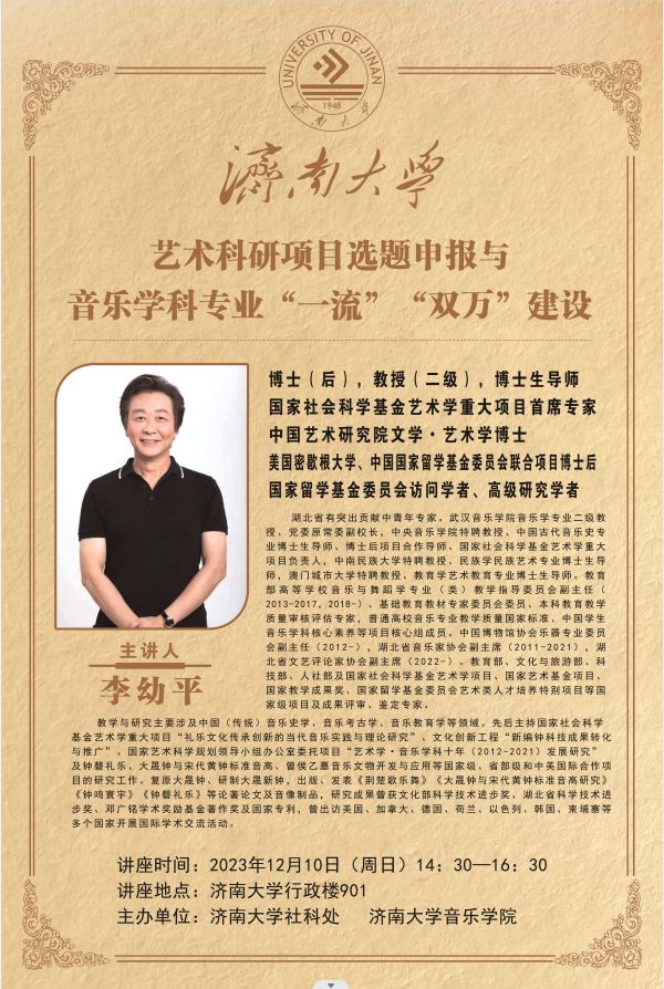 《艺术科研项目选题申报与音乐学科专业“一流”“双万”建设》讲座海报