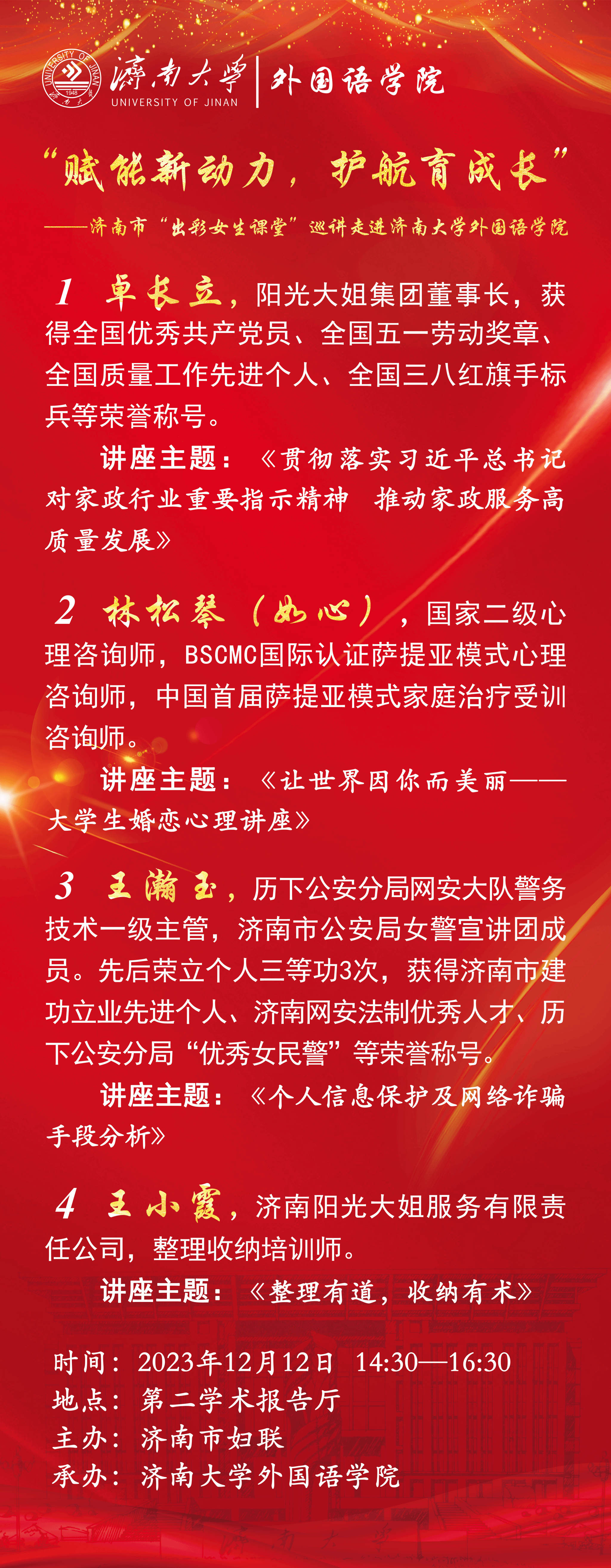 “赋能新动力 护航育成长”——济南市"出彩女生课堂"巡讲走进外国语学院