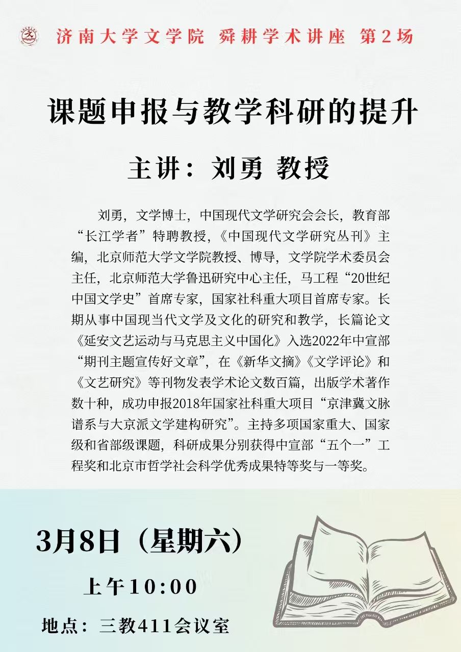 文学院舜耕学术系列讲座——课题申报与教学科研的提升