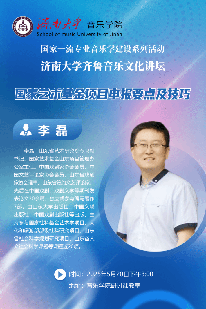 永利yl23411官网齐鲁音乐文化讲坛——国家艺术基金项目申报要点及技巧