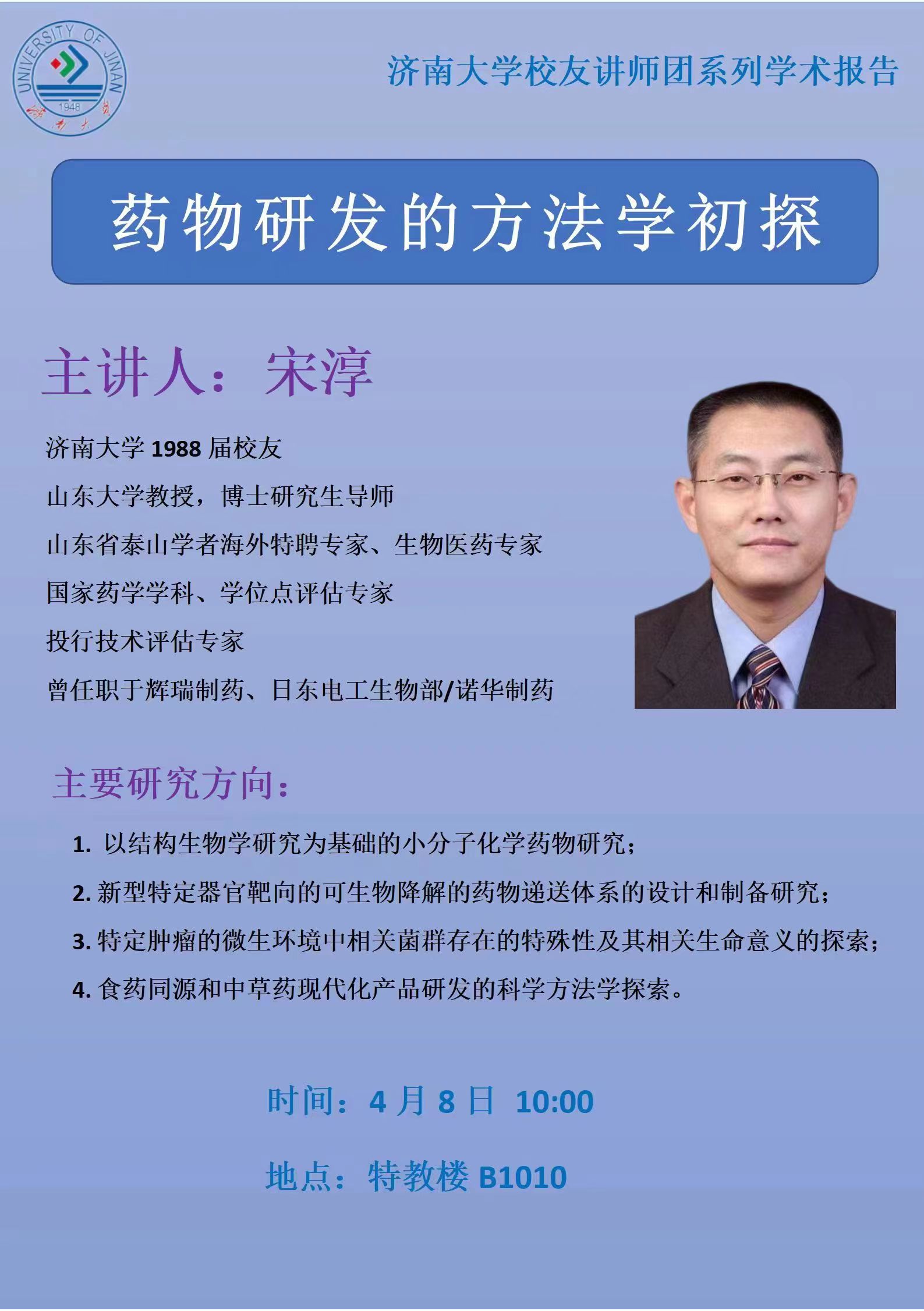 永利yl23411官网校友讲师团系列学术报告:药物研发的方法学初探