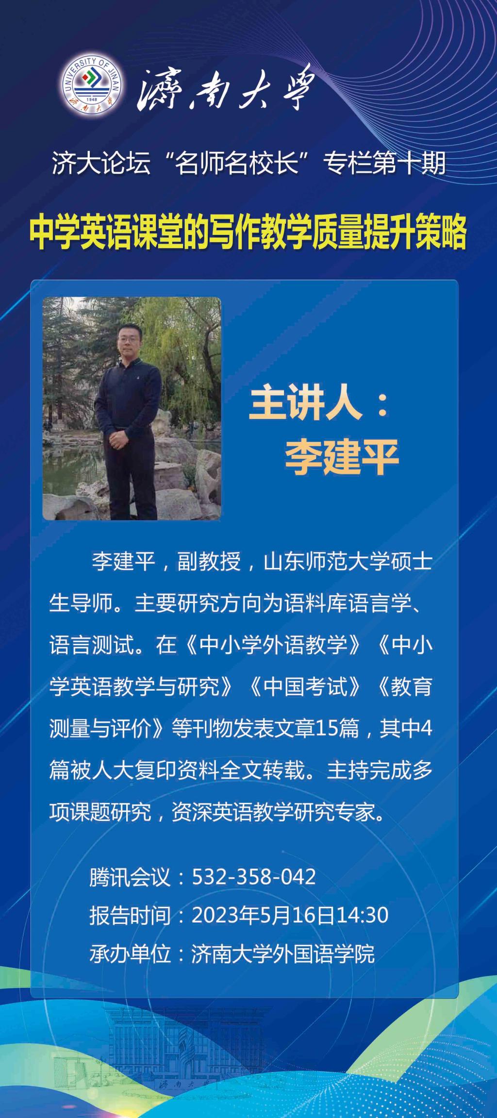 济大论坛“名师名校长”专栏第十期:中学英语课堂的写作教学质量提升策略
