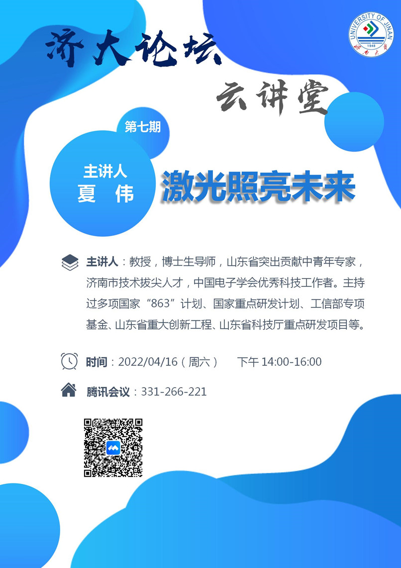 济大论坛“云讲堂”第七期:激光照亮未来