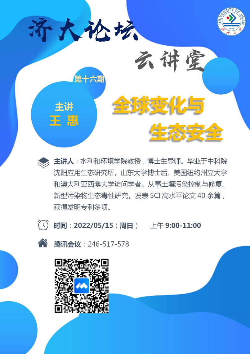 济大论坛“云讲堂”第十六期:全球变化与生态安全