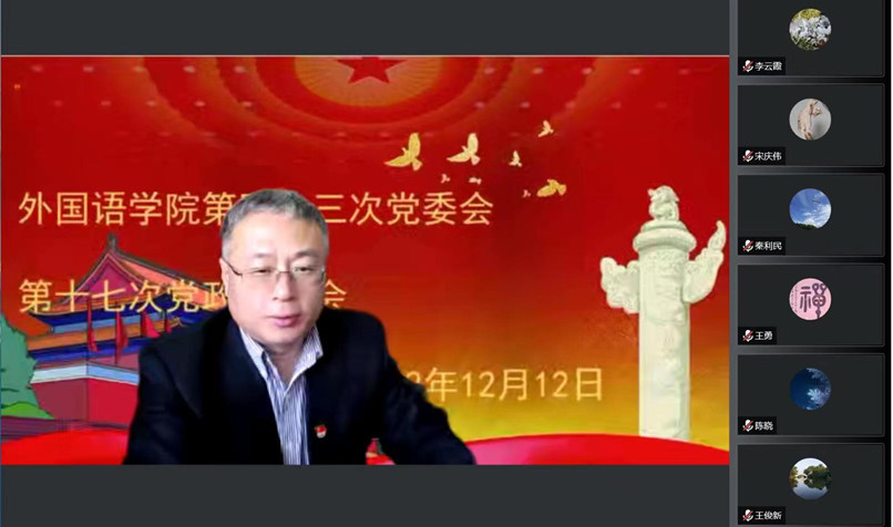 12月12日上午,学校党委常委、副校长黄加栋出席指导外国语学院党委会和党政联席会,会议以线上的方式进行,外国语学院全体班子成员参加会议,组织员、各党支部书记列席会议。会议由学院党委书记于文主持。 党委会总...