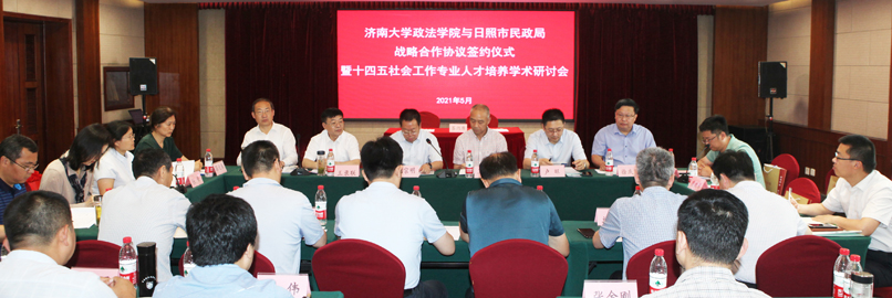 5月31日,政法学院与日照市民政局战略合作协议签约仪式暨十四五社会工作专业人才培养学术研讨会在济南举行。学校副校长刘宗明,山东省民政厅慈善事业促进和社会工作处三级调研员王建武,日照市民政局党组书记、局长王...