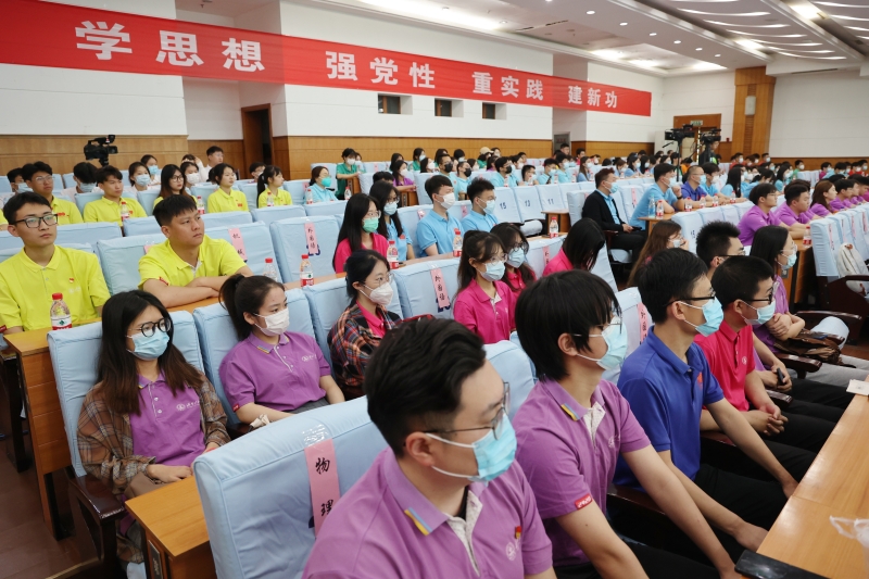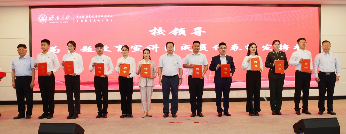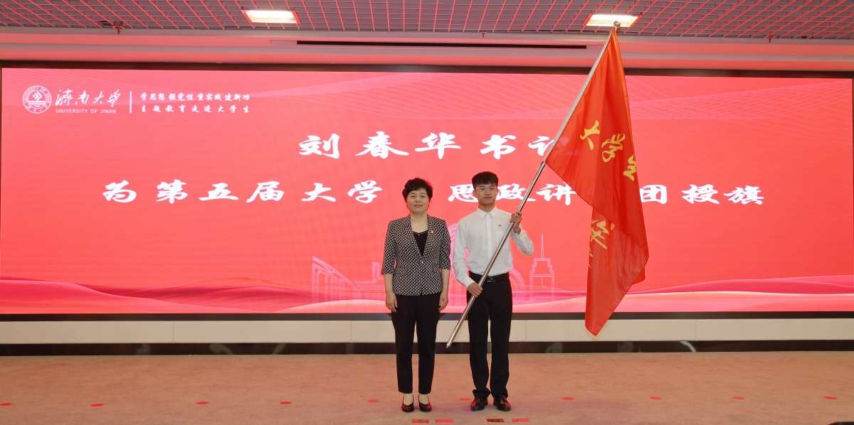 刘春华为第五届大学生思政讲师团授旗;刘宗明、查玉喜、杨景波为主题教育宣讲团成员代表颁发聘书。